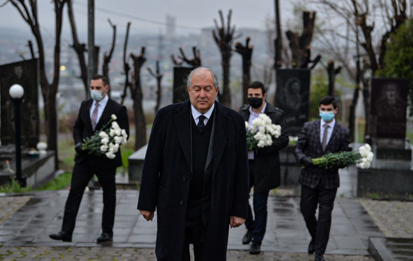 - President Armen Sarkissian visited today the Erablur Military Pantheon, the Presidential Office said. The President was accompanied by the former servicemen of the Armenian Army, employees of the Presidential Administration Gor Darmanian and Liparit Melkonian, as well as an employee of the Ministry of Emergency Situations Arkadi Andreasian. During their service in the Armed Forces they were distinguished for their combat readiness and dedication, and were injured during military actions. They were employed in the framework of the Homeland Defender initiative which aims at supporting the servicemen, who became disabled during the military service, by providing them with jobs. President Sarkissian and accompanying Homeland Defenders laid flowers at the tombs of the heroes, who lost their lives during April 2016 military actions, and paid tribute to their memory.