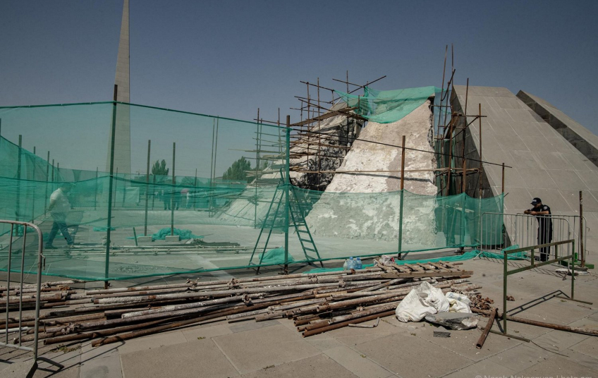 Շաբաթվա ընթացքում չէր դադարում աղմուկը Հայոց ցեղասպանության թանգարան-ինստիտուտի շուրջ: Պաշտոնական տեղեկությամբ՝ մոտ երկու ամիս է, ինչ մեկնարկել է հուշահամալիրի հիմնանորոգման աշխատանքների երկրորդ փուլը՝ «Հավերժության տաճարի» թեք մույթերի ու վարչական մասնաշենքի տանիքի նորոգումը: Իշխանական ԶԼՄ-ների հաղորդումների համաձայն՝ Ցեղասպանության հուշահամալիրի նորոգման ընթացքում թե՛ թանգարանը, եւ թե՛ բուն հուշահամալիրը բաց են լինելու այցելուների ու պաշտոնական պատվիրակությունների համար: Այդ նպատակով մույթերը հերթով են նորոգվում. այժմ ընթանում են առաջին երկու մույթերի վերականգնման աշխատանքները: