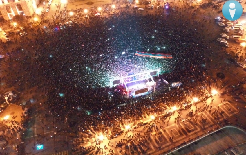 Բողոքի ցույցին զուգահեռ՝ Հանրապետության հրապարակում Նիկոլ Փաշինյանի կոչով հավաքվել էին նրա աջակիցները՝ մարզերից ավտոբուսներով բերված մարդիկ, պետական հիմնարկների ու գերատեսչությունների աշխատողներ, ոստիկանական ստորաբաժանումներ, զինվորականներ եւ այլք: Օրեր առաջ Նիկոլ Փաշինյանը եւս մեկ հանրահավաք ու երթ էր անցկացրել Հանրապետության հրապարակում այն բանից հետո, երբ Զինված ուժերի Գլխավոր շտաբը պահանջել էր նրա հրաժարականը, իսկ ինքը՝ Փաշինյանը այդ հայտարարությունը ռազմական հեղաշրջման փորձ էր որակել: