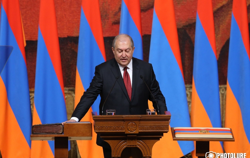 …Կարեն Դեմիճյանի անվան մարզահամերգային համալիր էին ժամանել նորընտիր նախագահի երդմնակալության արարողության մասնակիցներն ու հյուրերը: Ներկա էին ՀՀ Ազգային ժողովի պատգամավորներ, Հայաստանում հավատարմագրված` դիվանագիտական կորպուսի ներկայացուցիչներ, մշակույթի գործիչներ Հայաստանից ու այլ երկրներից, սփյուռքահայեր, հասարակական, քաղաքական գործիչներ եւ այլք: Իր ելույթում Արմեն Սարգսյանը խոսել է Հայաստանի առջեւ կանգնած խնդիրների ու նաեւ դրանց լուծման վերաբերյալ իր տեսլականի մասին` շեշտելով պետական համակարգում առկա արատավոր երեւույթների` մասնավորապես կոռուպցիայի, սոցիալական անարդարության եւ արտագաղթի դեմ հետեւողական պայքար մղելու անհրաժեշտությունը: «Մենք կհաջողենք, եթե ոչ միայն քննադատենք, այլ նաեւ լուծումներ առաջարկենք, եթե ջրբաժաններ ստեղծելու փոխարեն, համախմբվենք ու աշխատենք միասին»,- ասել է Հայաստանի 4-րդ նախագահը: Այդ համատեքստում նա կարեւորել է անձամբ իր դերակատարությունը` երդման խոսքում վստահեցնելով, որ բոլոր ուժերը կներդնի «ազգային միասնության ամրապնդման գործում»: Դատելով ասվածից, կարելի է եզրակացնել, որ հենց ազգային միասնությունն է մեր պետության «աքիլլեսյան գարշապարը»: Եվ պատահական չէ, որ Սարգսյանը ցանկություն էր հայտնել, որ իր երդմնակալության արարողությանը մասնակցեն Հայաստանի նախորդ բոլոր 3 նախագահները, սակայն ներկա էր միայն Սերժ Սարգսյանը: Առաջին նախագահ Լեւոն Տեր-Պետրոսյանի ղեկավարած «Հայ ազգային կոնգրեսը» հայտարարել էր, որ նախագահի պաշտոնում Արմեն Սարգսյանի ընտրությունը համարում է ոչ լեգիտիմ, իսկ երկրորդ նախագահի գրասենյակի ղեկավար Վիկտոր Սողոմոնյանն ավելի վաղ հայտնել էր, թե Քոչարյանն այդ օրերին գտնվելու է արտերկրում: Երդմնակալությանը ներկա չէին նաեւ խորհրդարանի ընդդիմադիր խմբակցությունների ղեկավարները: «Ելք» խմբակցության ղեկավար Նիկոլ Փաշինյանն «Իմ քայլը» նախաձեռնության շրջանակներում քայլերթ է իրականացնում մարզերում, իսկ Ազգային ժողովի ընդդիմադիր ամենամեծ ուժի՝ «Ծառուկյան» խմբակցության ղեկավար Գագիկ Ծառուկյանը մասնավոր այցով արտերկրում էր: Փոխարենը այդ օրը, ըստ մամուլի հաղորդումների, երդմնակալության արարողությանը ներկա էին ընդդիմադիր արտախորհրդարանական ուժերի ղեկավար անդամներ, այդ թվում «Ժառանագության» հիմնադիր նախագահ Րաֆֆի Հովհաննիսյանը եւ Հայաստանի ժողովրդական կուսակցության ղեկավար Ստեփան Դեմիրճյանը: Ուշագրավ է, որ արարողությունից հետո Հայաստանի 4-րդ նախագահն անմիջապես ուղեւորվեց Եռաբլուր, այնտեղից էլ` Մաշտոցի 47, որը Հայաստանի նախագահի նոր նստավայրն է: Հետմիջօրեին Արմեն Սարգսյանն ընդունեց Կառավարության հրաժարականը: Այդ օրը տարբեր կանխատեսումներ ու գնահատականներ հնչեցին Հանրապետության 4-րդ նախագահի առաջիկա գործունեության մասին: Սակայն կանխատեսումները, ինչպես հայտնի է, անշնորհակալ գործ են, իսկ գնահատականների համար դեռ վաղ է: Չէ՞ որ մարդու մասին դատում են նրա գործերով, ոչ թե խոսքերով: Կաշխատի` կերեւա: