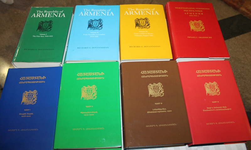 24 մայիսի 2016թ., Երեւան: Մ.Մաշտոցի անվան հին ձեռագրերի գիտահետազոտական ինստիտուտի՝ Մատենադարանի նոր շենքի նիստերի լեփլեցուն դահլիճում այսօր տեղի ունեցավ ակադեմիկոս Ռիչարդ Գ. Հովհաննիսյանի քառահատոր աշխատության III-IV հատորների՝ «Հայաստանի Հանրապետություն. Լոնդոնից Սեւր, փետրվար-օգոստոս, 1920» եւ «Հայաստանի Հանրապետություն. Սալի եւ մանգաղի միջեւ. Մասնատում եւ խորհրդայնացում» գրքերի հայերեն թարգմանության շնորհանդեսը: Այն կազմակերպել էին ՀՀ Գիտությունների ազգային ակադեմիան, Մաշտոցի անվան հին ձեռագրերի Մատենադարան գիտահետազոտական ինստիտուտը եւ Ռազմավարական ու ազգային հետազոտությունների հայկական կենտրոնը (ՌԱՀՀԿ): Հրավիրված էին պատմության եւ հայագիտության ոլորտի ճանաչված դեմքեր, երիտասարդ գիտնականներ, հասարակական-քաղաքական գործիչներ, մտավորականներ, լրատվամիջոցների ներկայացուցիչներ: